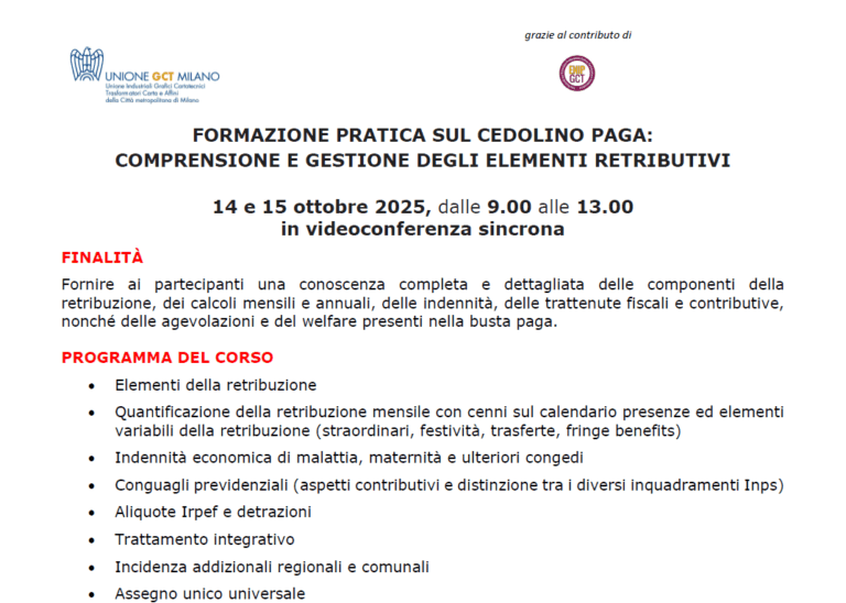 14 – 15 ottobre – Corso ONLINE Formazione pratica sul cedolino paga: comprensione e gestione degli elementi retributivi